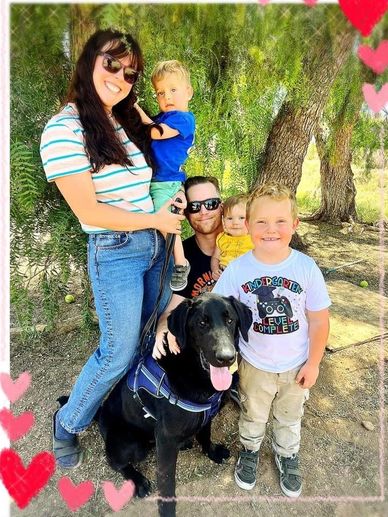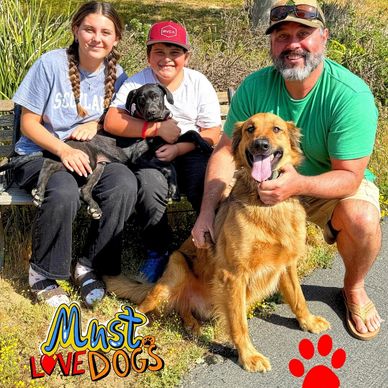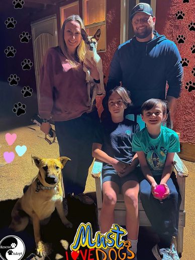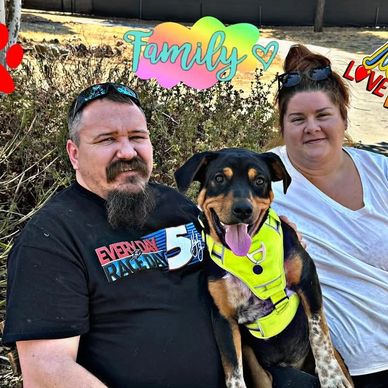 Doug reached out after being referred by a neighbor. He was originally interested in Kyra and Magnolia, but even with an approved application - the family had some obligations that kept them from coming to meet the girls right away. When they did get to the rescue, they mentioned that they wanted a dog who would be a form of support and love for their son and the rest of the family. Tomahawk was introduced to them, and the fairy tale began!