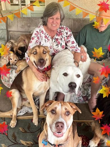 Rocky's dad is retired, so Rocky now has parents at home all the time, a pool, grandkids to love on, and he gets to sleep with his mom and dad every night. He will be doted on as the only dog, and we are ecstatic that Rocky got just the home he needed, and very much the home he deserved!