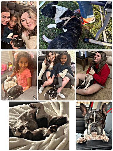 Almost immediately I got a message from somebody offering to foster, I knew them, as I had chipped their Doberman. They had just recently lost their frenchie male and were desperately needing the love of a little dude. He’s since been fully vetted, neutered and went into foster. They ultimately decided they absolutely wanted to adopt him. He has a Doberman brother and 2 human siblings.
